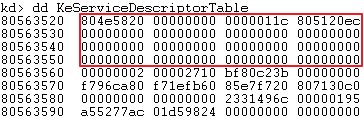 系统服务表(System Service Table,SST),共有两张,第一张表后紧接第二张表,表里的函数都是来自内核文件导出的函数。但它并不包含内核文件导出的所有函数,而仅是3环最常用的内核函数。系统服务表位于 _KTHREAD +00xE0 处,其本质是一个个结构体