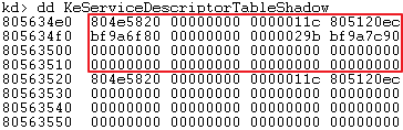 系统服务描述符表(System Services Descriptor Table,SSDT),SSDT的每个成员叫做系统服务表(SST)。SSDT的第一个成员是导出的,声明一下即可使用;SSDT的第二个成员是未导出的,需要通过其它方式查找。在Windows中,SSDT的第三个成员和第四个成员未被使用。