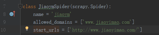 - scrapy genspider jiaoym www.jiaouimao.com #注意,爬虫名不得与项目名相同