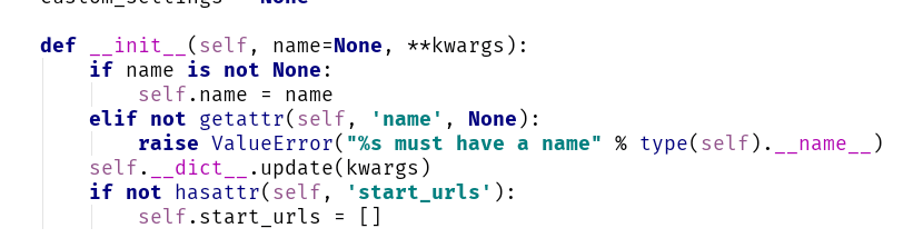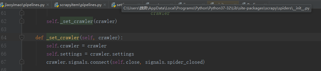 在这里,super()函数解决了无法重写__init__方法的问题。因为没有crawler属性,通过搜索,我们会发现父类中有_set_crawler这个方法。
