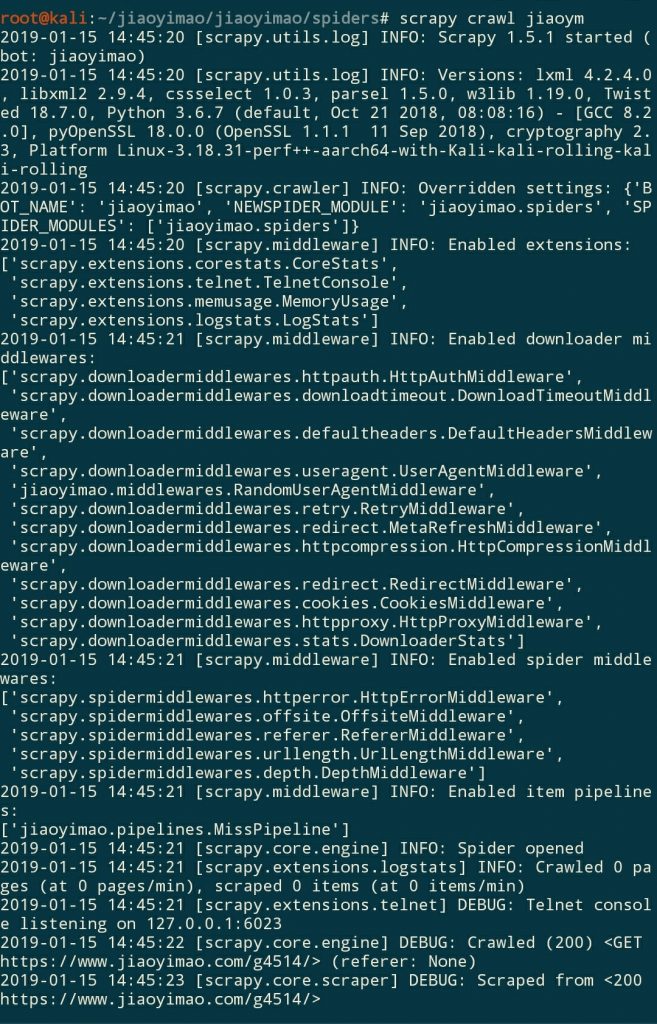 最后我们来启动一下爬虫:scrapy crawl jiaoym
