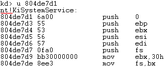 查看EIP所在地址的反汇编,可以看到nt表示当前函数为内核函数