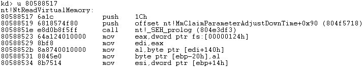 在之前的实验中,我们通过分析三环的ReadProcessMemory函数,一步步了解三环函数是如何进入内核的。我们应该看到了当ReadProcessMemory即将进入内核时,传递了一个系统服务号,为0BAh。本次实验查找编号 0xBA 在 SSDT 表中的相关信息